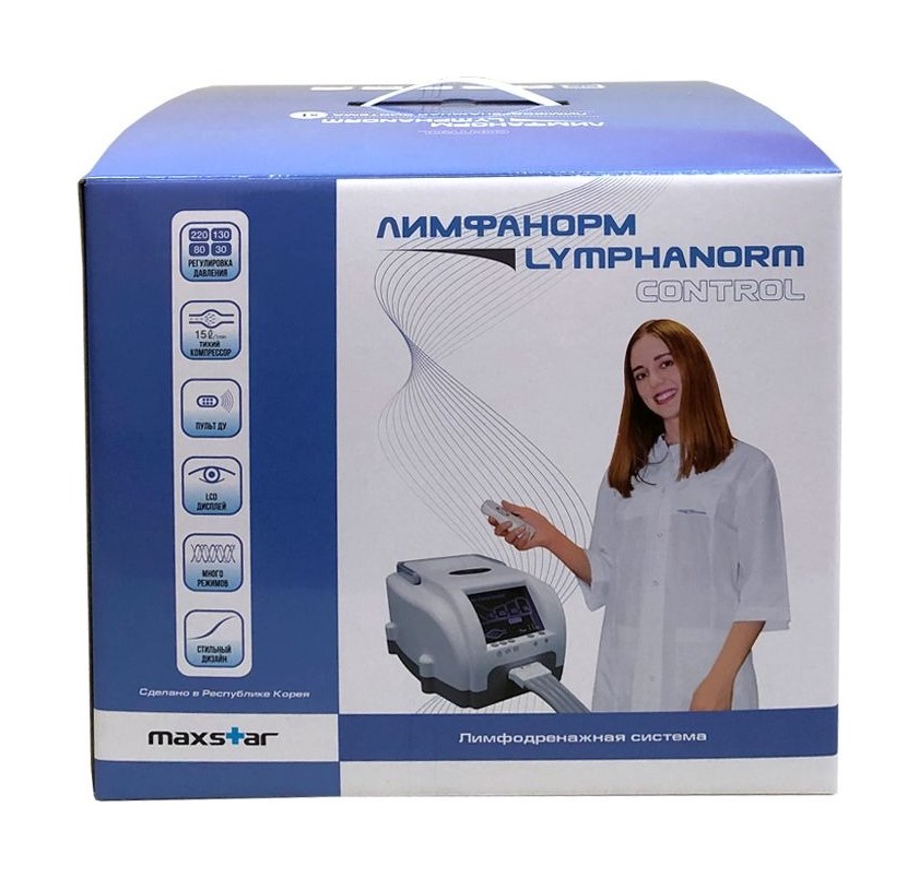 LymphaNorm Control (Лимфанорм Контрол) подходит для прессотерапии дома и в медицинских учреждениях. Прессотерапия использует сжатый воздух для воздействия на отдельные участки тела через манжеты. Она помогает улучшить работу лимфатической системы. Массажер оснащен микропроцессором, который контролирует давление. Это делает процедуру более эффективной. Прессотерапия уменьшает целлюлит, повышает тонус кожи и мышц, нормализует обмен веществ и кровообращение.